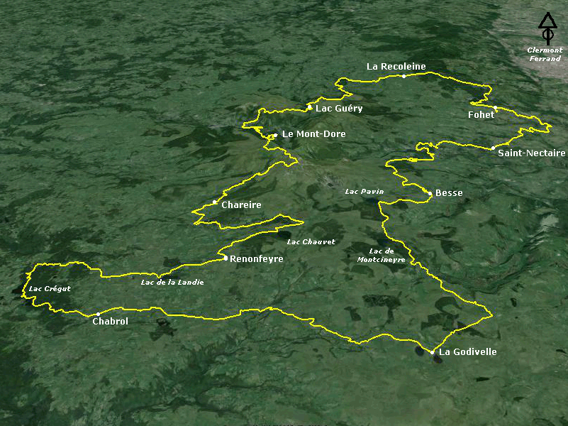 En tout cas, la mise à jour du site m'a donné une envie : refaire ce superbe circuit, qui offre un regard sur plusieurs groupes volcaniques auvergnats : le Cézallier, le massif du mont Dore avec le groupe du Sancy, le groupe des monts Dore, le groupe du Pavin, la chaîne des Puys, mais aussi sur le socle granitique de l'Auvergne.