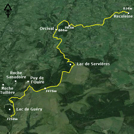 Date de la balade : 31/07/2005 Départ : Le lac de Guéry Point haut : 1476m Point bas : 836m Dénivelé positif : 590m Dénivelé négatif : 903m Longueur : 23 km Durée : 6h30