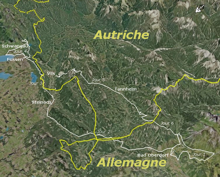 Nous n'avions pas d'idée préconçue de la Bavière, de ses paysages et de ses habitants. C'est donc un peu le hasard qui nous a fait choisir cette balade d'une semaine dans le catalogue de "Vagabondages". Elle se déroule à la frontière autrichienne dans l'extrême Sud de l'Allemagne, entre le lac de Constance et le point culminant de l'Allemagne (Le Zugspitze, 2962m, près de Garmisch-Partenkirchen).