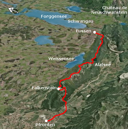 Nous commençons la journée par la montée vers le chateau de Falkenstein, que Louis II de Bavière a rêvé de reconstruire. Nous passons devant la Mariengrotte, dédiée bien évidemment à la Vierge.