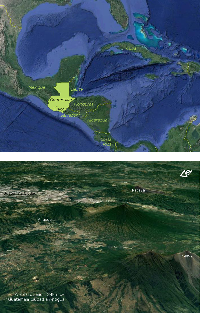 Avec Patrick, nous décidons en cette fin d'année 2016 de revenir au Guatemala, avec un seul objectif : assister et photographier un paroxysme du Fuego. Le volcan est particulièrement actif en ce moment, avec une fréquence d'environ un paroxysme par mois. Nous en profiterons également pour jeter un oeil sur le cratère du Pacaya, et faire un peu de tourisme vers Antigua.