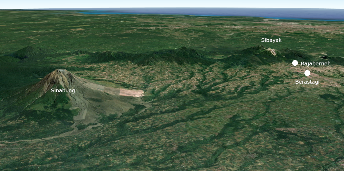 Le Sibayak se trouve à six kilomètres seulement de Berastagi. Sa dernière éruption date de 1881. Il constitue aujourd'hui un lieu de promenade très prisé, d'autant qu'un chemin, aujourd'hui en piteux état, avait été construit à l'époque coloniale pour permettre au gouverneur de s'y promener avec sa famille.