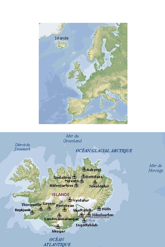 Juillet 1995 ; après avoir tenté de négocier avec Terres d'Aventures, nous partons tous les six avec "Comptoir d'Islande" effectuer cette randonnée de 15 jours, en bus 4*4 mais ponctuée de balades à pied. Le couchage se fait dans des salles de sport ou des écoles désertées pendant les vacances, ou le plus souvent sous tente. Sauf quand une tempête de neige (le 14 Juillet) fait paniquer notre guide qui nous renvoie dans un refuge. Malgré ce temps (exceptionnellement parait-il) mauvais, nous apprécions les superbes paysages qu'offre l'Islande. Les volcans notamment donnent l'impression d'avoir explosé la veille, la lave étant parfois encore chaude. Le temps n'a pas permis de tout photographier, notamment une baignade mémorable dans une source chaude, sous la pluie et dans un paysage enneigé...