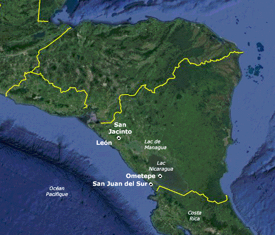 Située sur le lac Nicaragua, l'île d'Ometepe est constituée de deux imposants cônes volcaniques, le Concepcién (1610m) et le Maderas (1394m). Depuis 40 ans, le Concepcién est en activité permanente mais faible (allant des fumerolles à l'émission de cendres) ; le Maderas est quant à lui inactif dans la période historique ; un lac occupe son cratère.