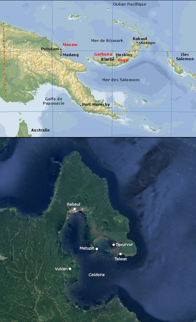 | Récolte des oeufs de mégapodes | Voile traditionnelle | Le Tavurvur depuis Matupit |