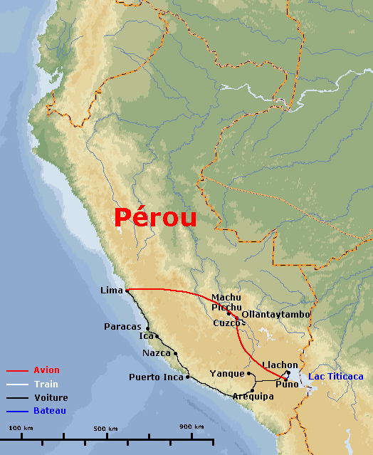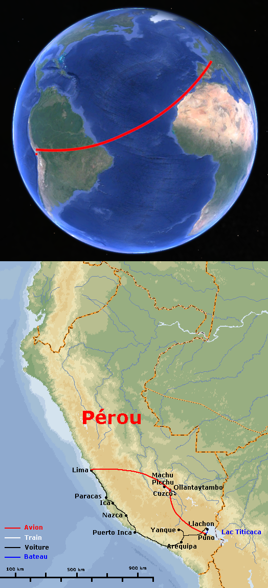 Pour ce voyage, Olivier et Hélène ont choisi comme destination le Pérou. Nous nous inscrivons au circuit "Pachacutec" d'Atalante, qui nous permet au prix de longs transferts en voiture de découvrir plusieurs aspects du sud du Pérou : le désert côtier, le canyon de Colca, le lac du Titicaca et la vallée sacrée et le site du Machu Piccu ; sans parler des sites pré-incas et incas, omniprésents, mais aussi de l'excellente cuisine pérvuvienne. Nous sommes cinq pour ce voyage, Gwenaelle et Catherine complétant notre groupe accompagné par Abel.