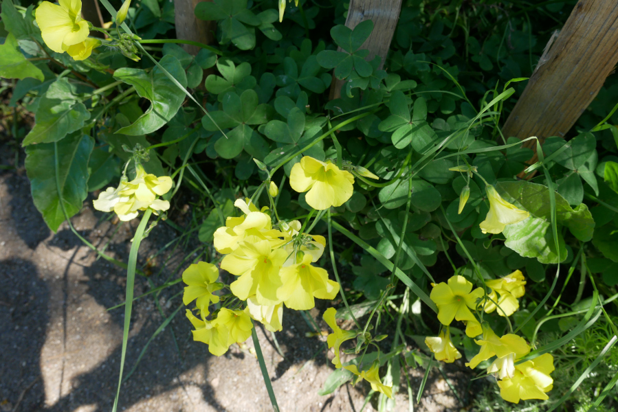 Oxalide pied de chèvre oxalis pes-caprae Elle a des feuilles